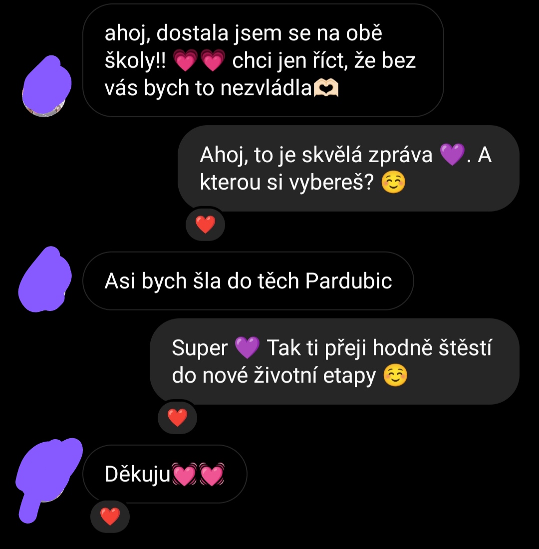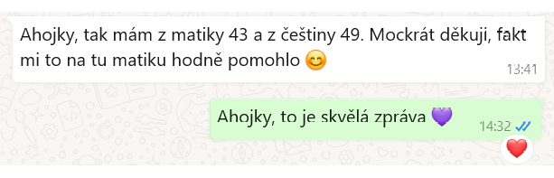 Doučování bylo příjemné. Na přijímačky mi určitě pomohlo :)!