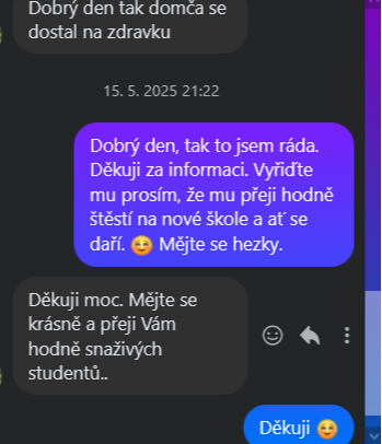 Jsme velmi spokojeni, dcerka se velice zlepšila v přípravě k přijímacím zkouškám na SŠ, výborná komunikace a ochota s doučováním i o víkendu, v případě potřeby i online hodiny. Doporučujeme a těšíme se na další spolupráci 🙂