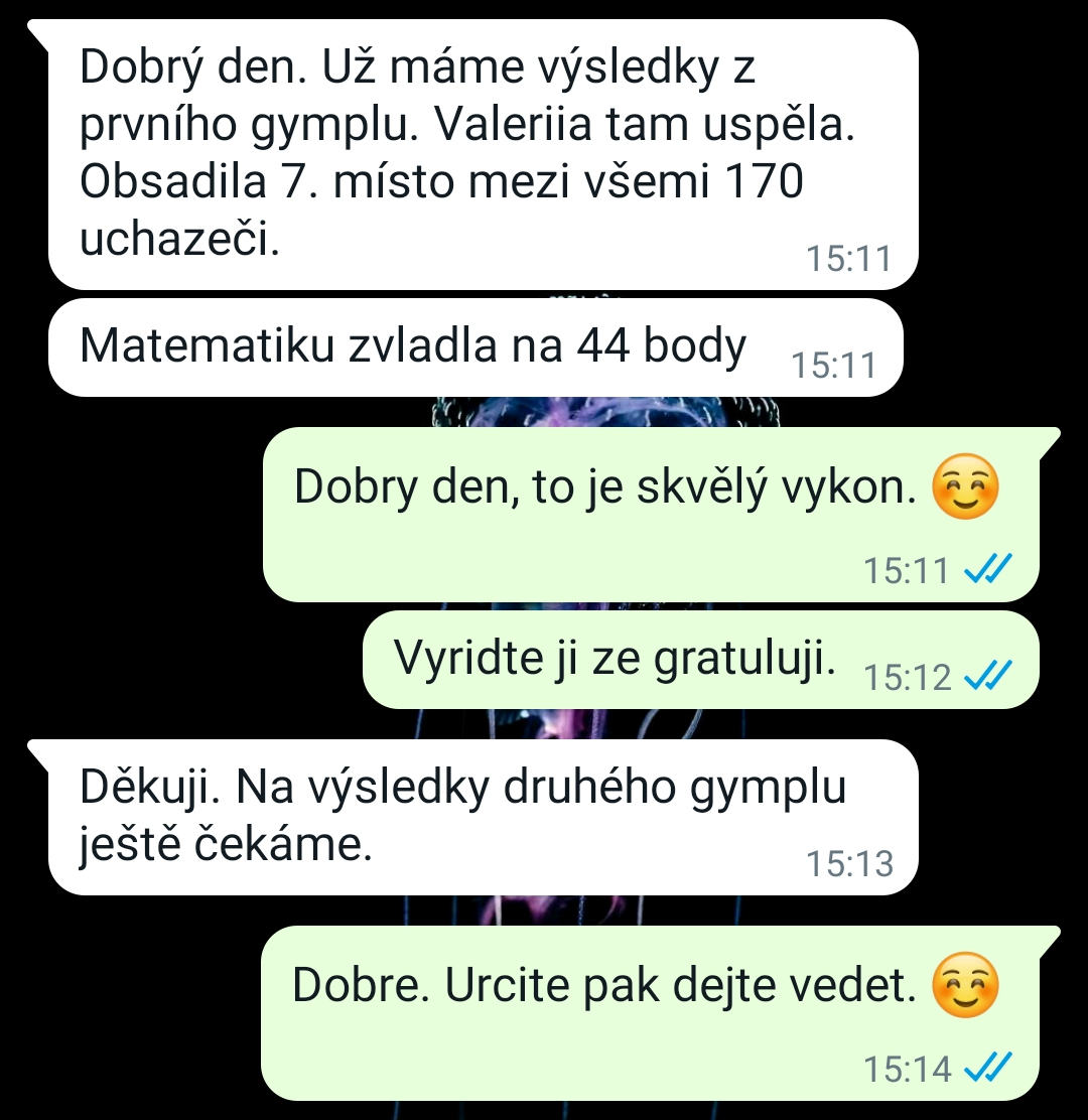 Terezko, moc děkujeme. Díky Vám Natálka zvládla přijímačky a matematika jí byla skvěle vysvětlena. Ještě jednou díky, krásné léto.